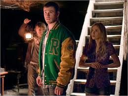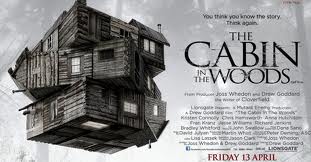 On Friday night, I took time out of my very prescious life span to see The Cabin In The Woods without any prior knowledge of it (I just didn't want to pay money to see American Reunion). On the movie poster it reads in fine print "from the writers of Cloverfield" and people know I love Cloverfield! So this movie had me at hello..